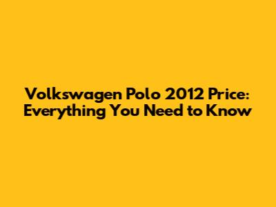 Volkswagen Polo 2012 Price: What You Need To Know